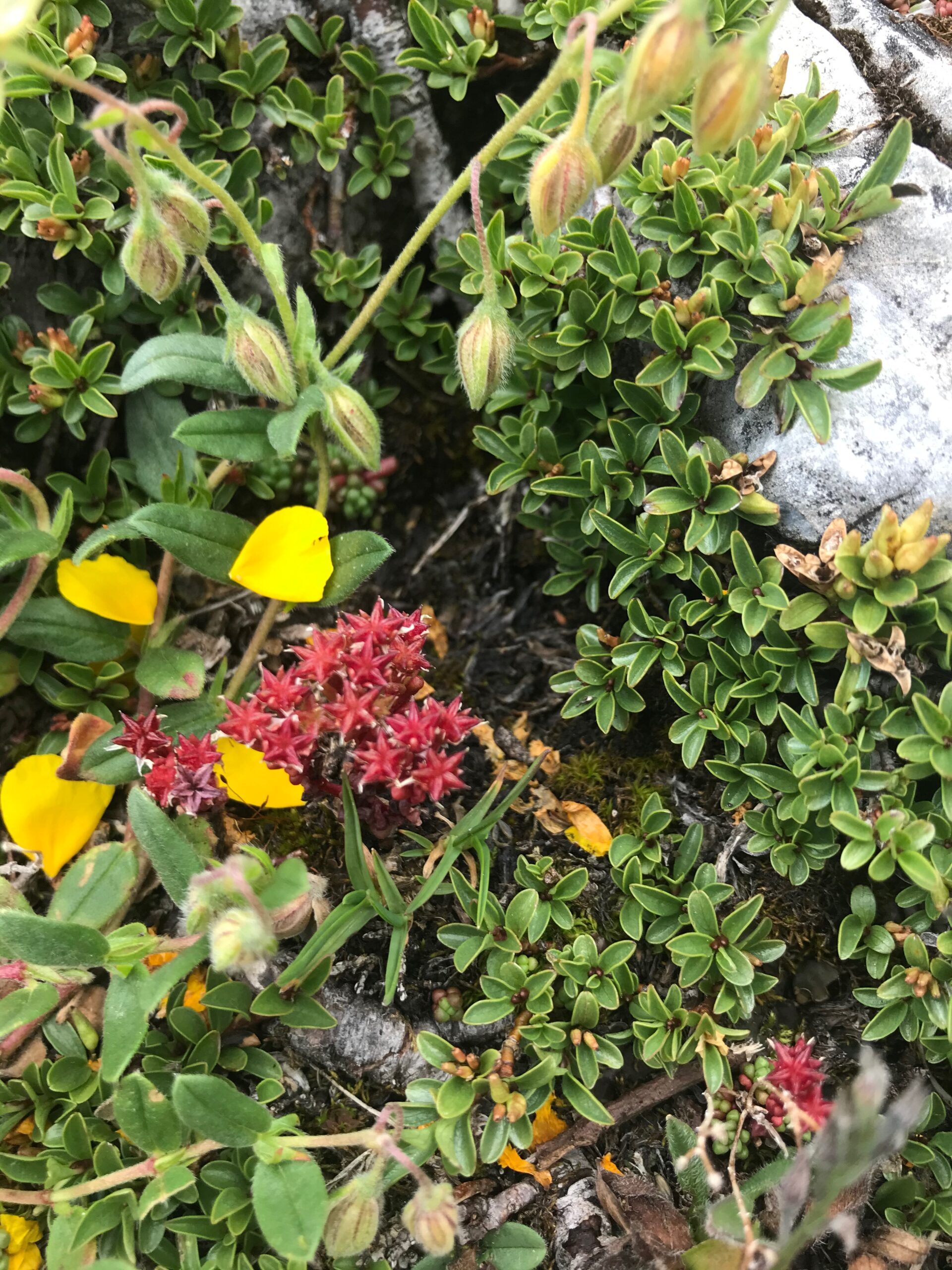 Flora nach Farben sortiert, nachstehend der lateinische, deutsche und italienische Name