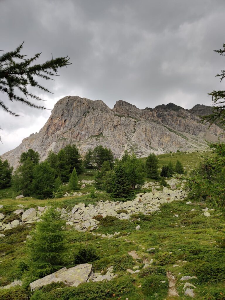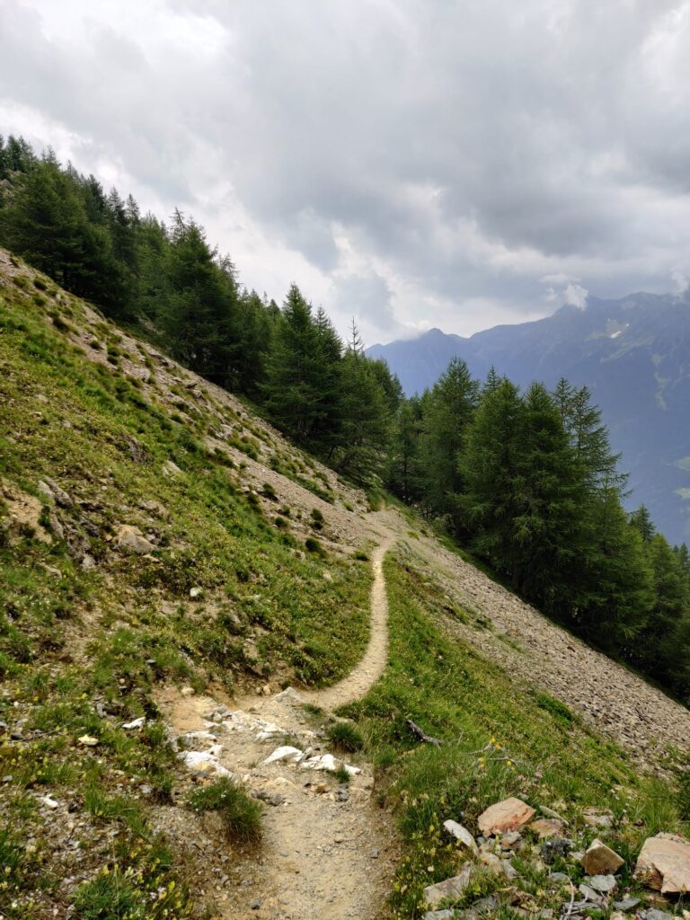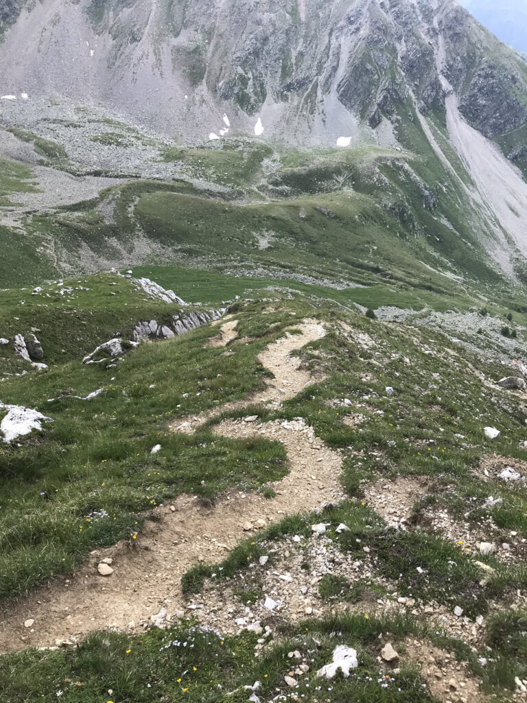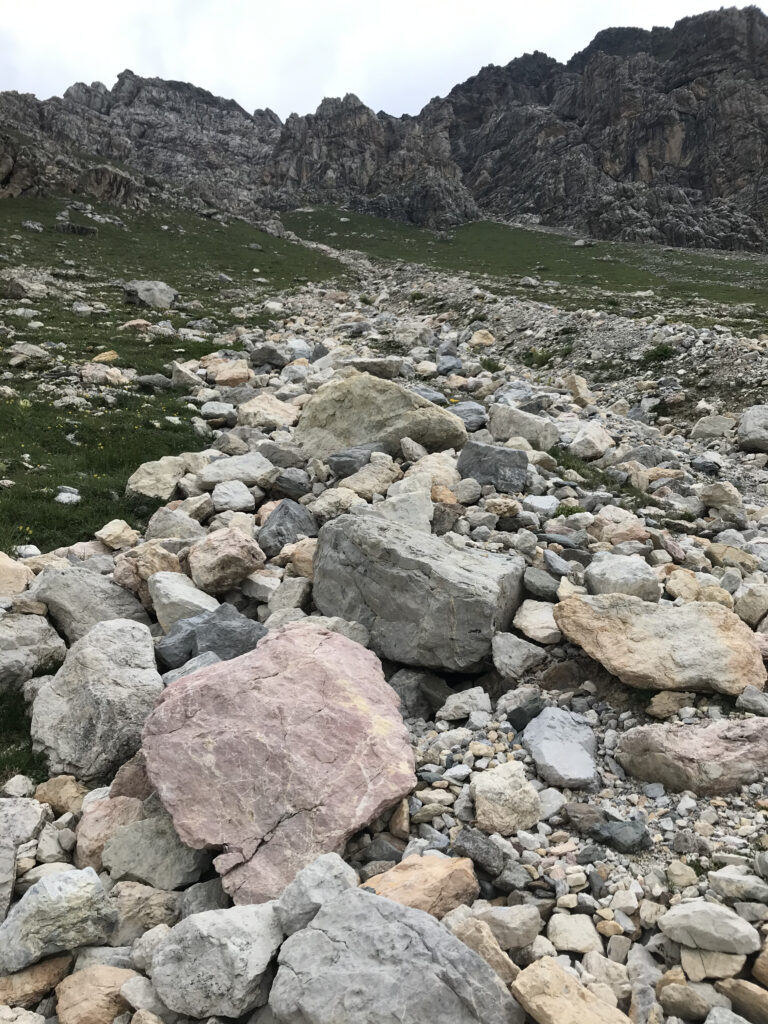 Nach den Geröllhalden gelangt man auf Alpenweiden. Diese bestehen teils aus Borstgrasrasen, teils aus Buntschwingelhalden.